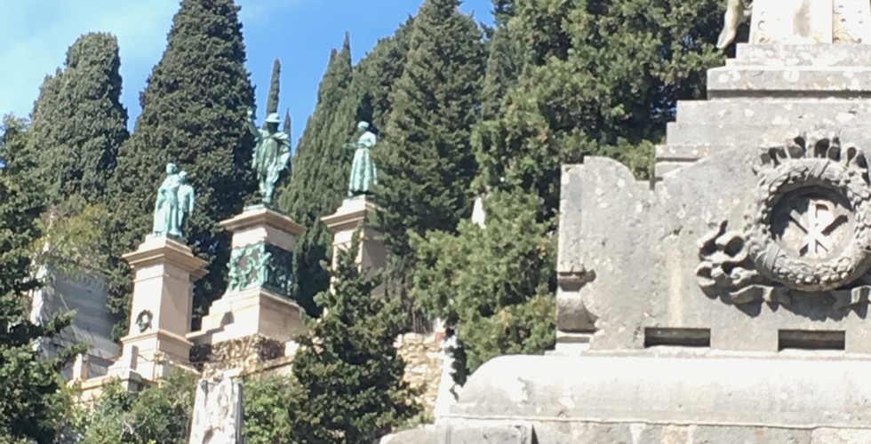 Il fait grand beau, on y trouve un peu de fraîcheur. Immense, calme, verdoyant, fleuri, y reposent catholiques, anglais, juifs et protestants. On y trouve tout modèle de sépulture. Familles riches rivalisent entre elles, familles modestes y reposent aussi. Tombeaux, sculptures imposantes, caveaux, pleines terre, enfeus, chapelles, on y voit de tout. Cette balade est à couper le souffle. Au travers de dates, de styles de sépulture, de noms, de photos, de décorations, on imagine et se raconte la vie des gens.